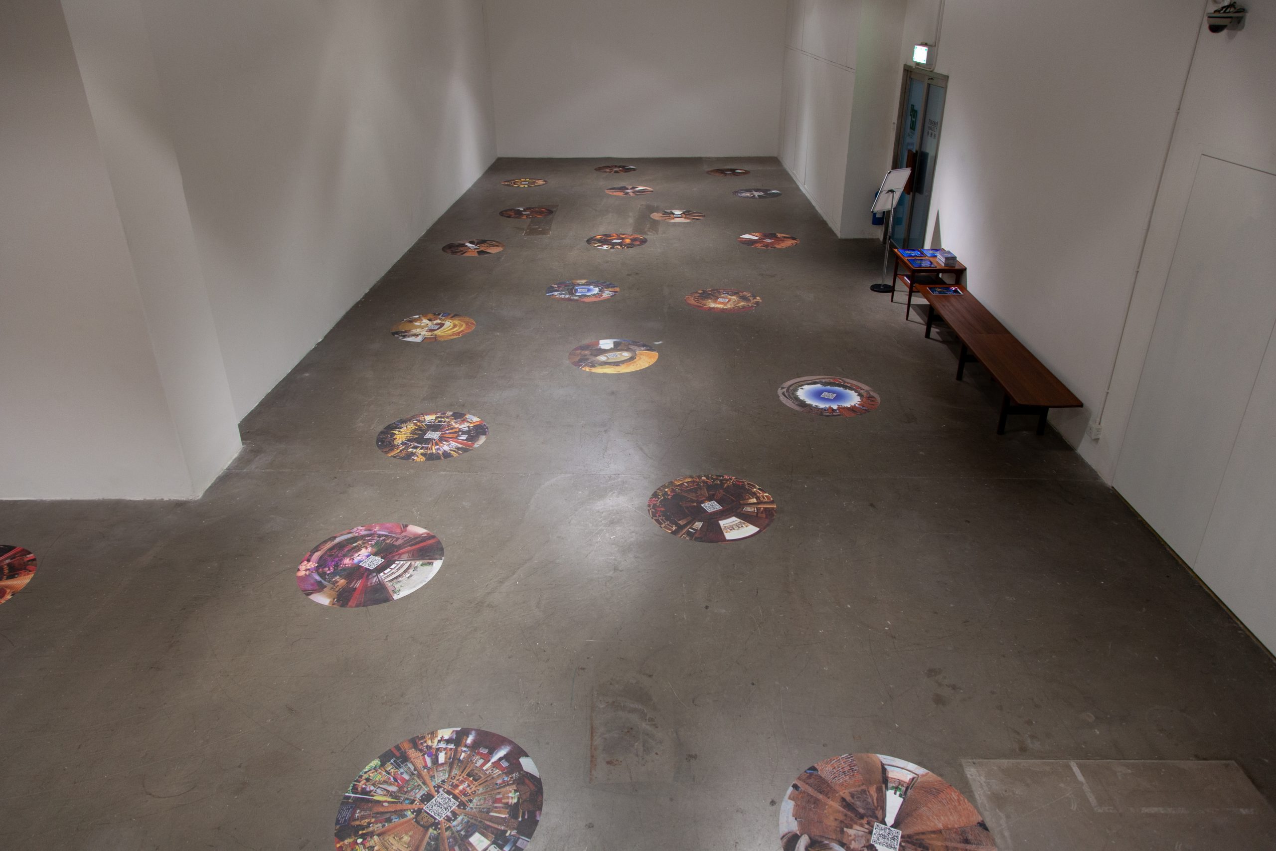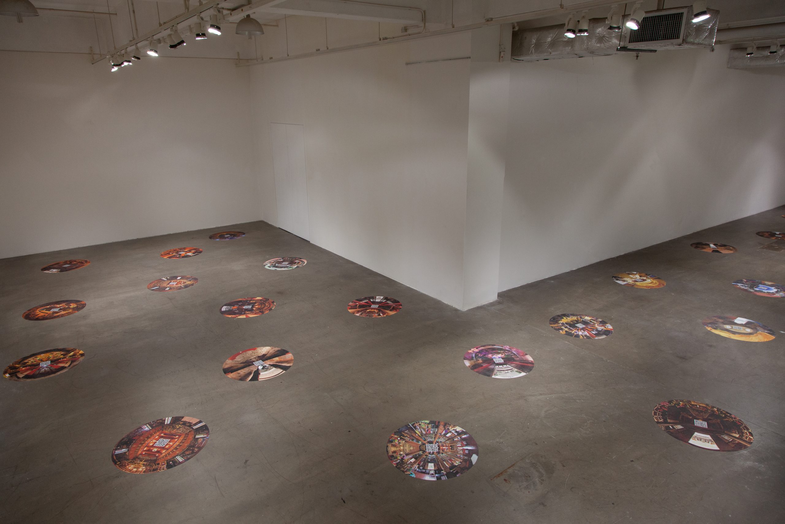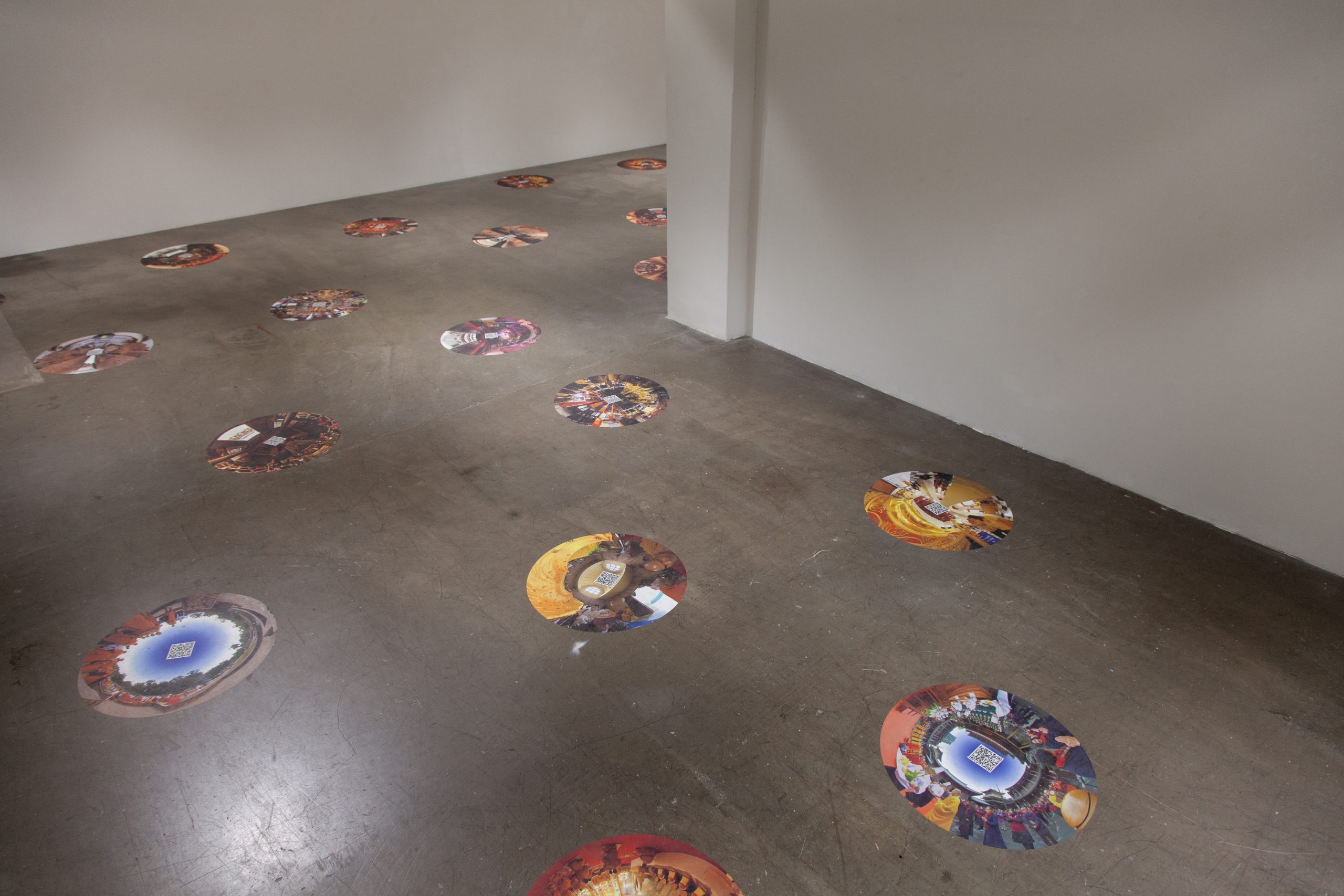 The exhibition ATLAS OF MARITIME BUDDHISM – VR has been specially conceived by the artists for Hanart TZ. It is a satellite experience to the exhibition ATLAS OF MARITIME BUDDHISM that is currently showing at the Indra and Harry Banga Gallery at City University in Hong Kong. It features thirty-three selected works of 360-degree spherical photography that were made by the artists at important maritime Buddhist sites across Asia. These are presented as 80cm diameter circular images on the floor of the gallery that each have a QR code in the center. Using one’s smart phone or one of the provided iPads, visitors to this exhibition can then explore these sites in high-fidelity VR – the immersive sceneries of these sacred Buddhist sites completely surround the viewers as they move and look about on their mobile screens. The resulting exhibition is a conjunction of the real and virtual whereby an empty gallery space comes to contain a profound articulation of multifold Buddhist settings that spring up like lotus flowers from these digital imprints.