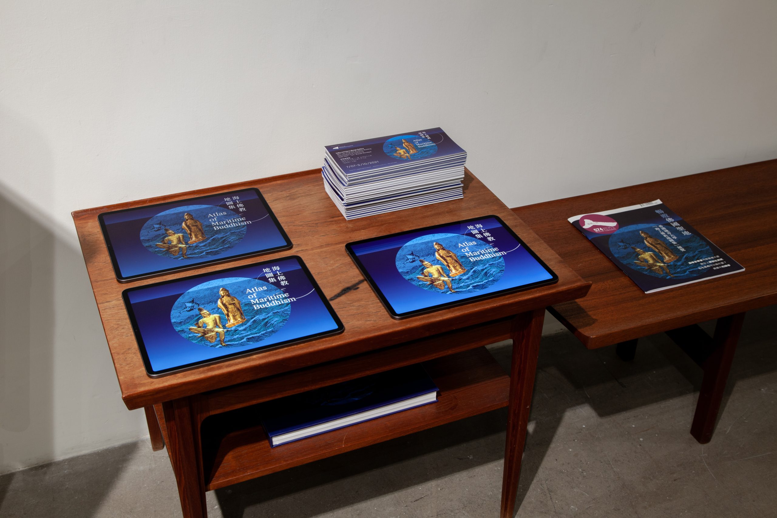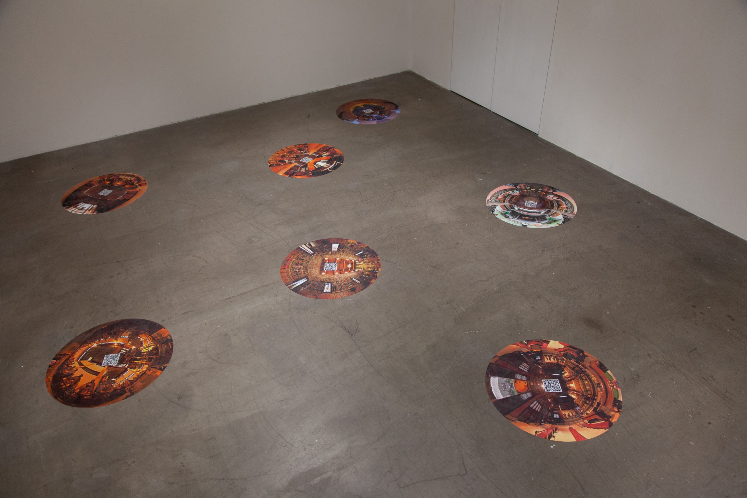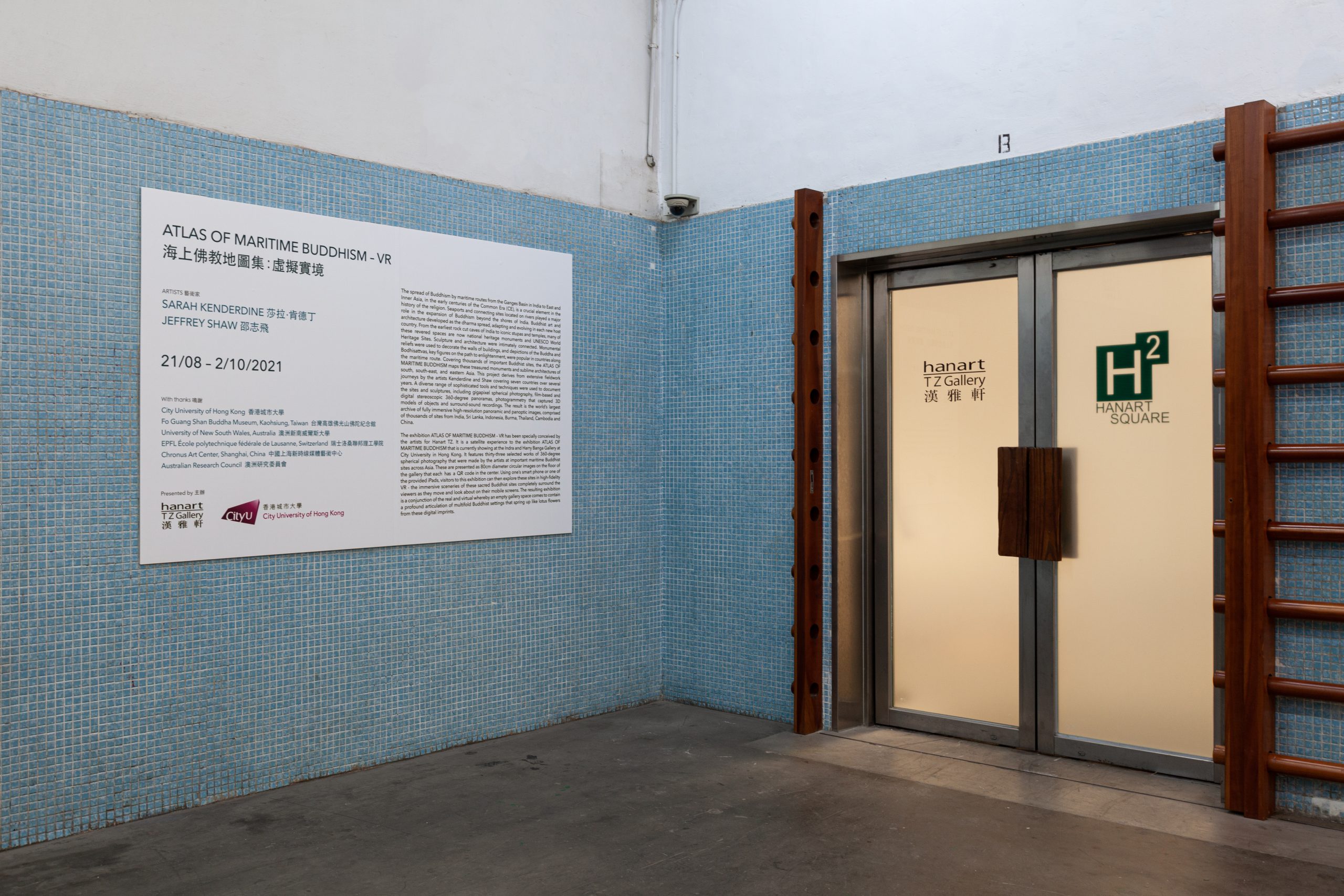 The exhibition ATLAS OF MARITIME BUDDHISM – VR has been specially conceived by the artists for Hanart TZ. It is a satellite experience to the exhibition ATLAS OF MARITIME BUDDHISM that is currently showing at the Indra and Harry Banga Gallery at City University in Hong Kong. It features thirty-three selected works of 360-degree spherical photography that were made by the artists at important maritime Buddhist sites across Asia. These are presented as 80cm diameter circular images on the floor of the gallery that each have a QR code in the center. Using one’s smart phone or one of the provided iPads, visitors to this exhibition can then explore these sites in high-fidelity VR – the immersive sceneries of these sacred Buddhist sites completely surround the viewers as they move and look about on their mobile screens. The resulting exhibition is a conjunction of the real and virtual whereby an empty gallery space comes to contain a profound articulation of multifold Buddhist settings that spring up like lotus flowers from these digital imprints.