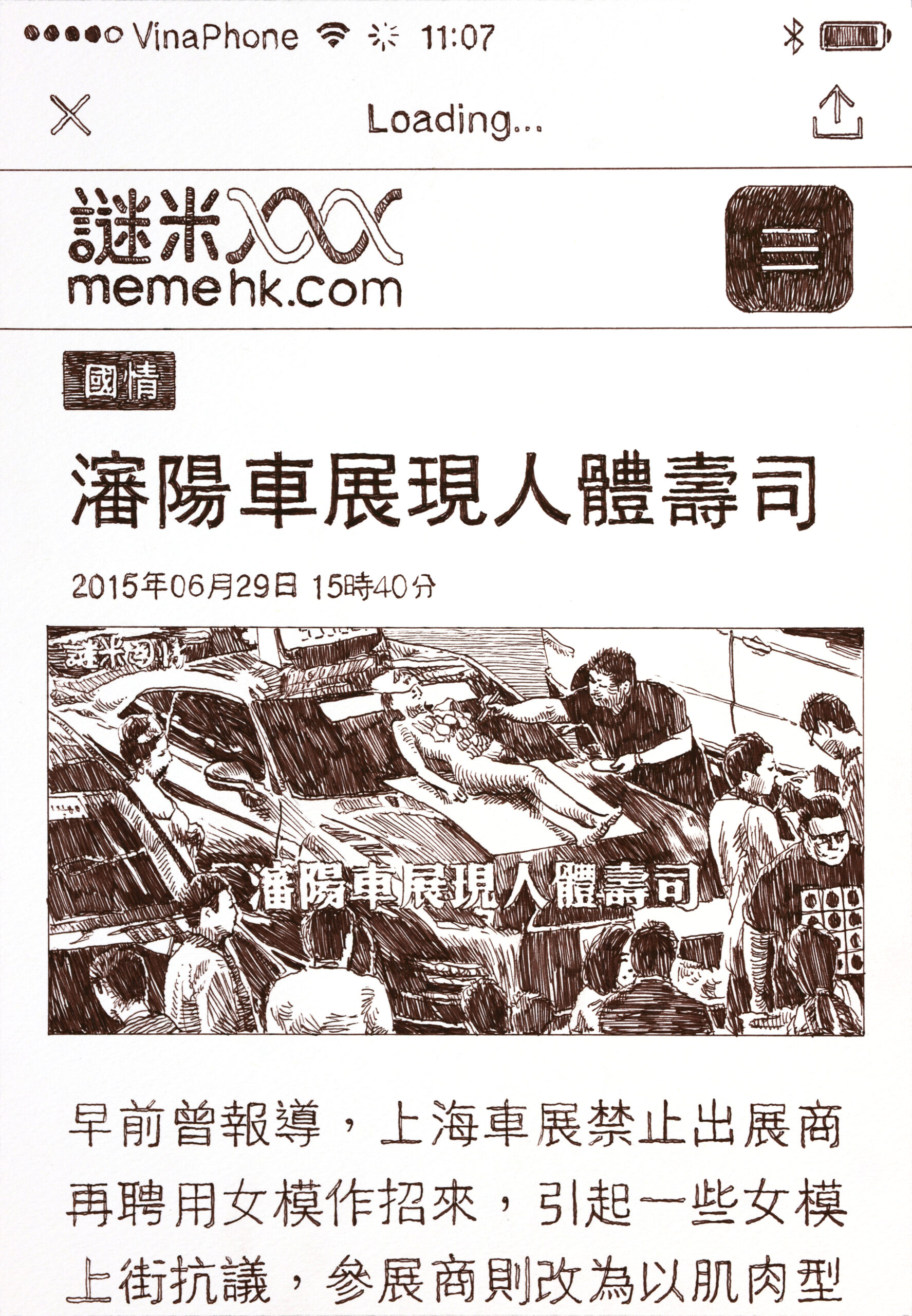 Captured from my mobile phone series: MEMEHK.COM, “Human sushi on display at the Shenyang Car Show”