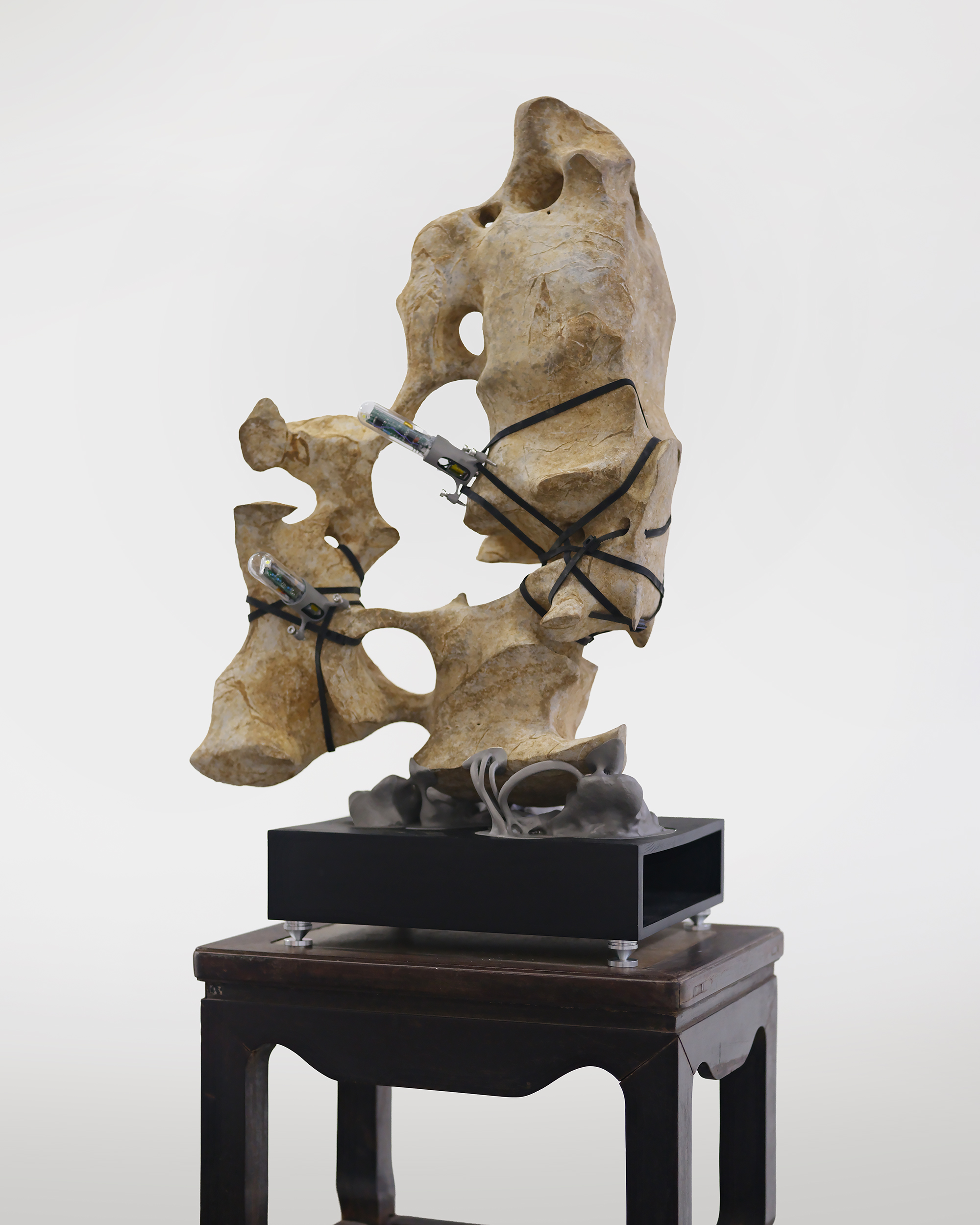 1 Taihu Rock, Stainless Steel 3D Print, 2 Cherrywood Acoustic Resonators, Custom Electronics