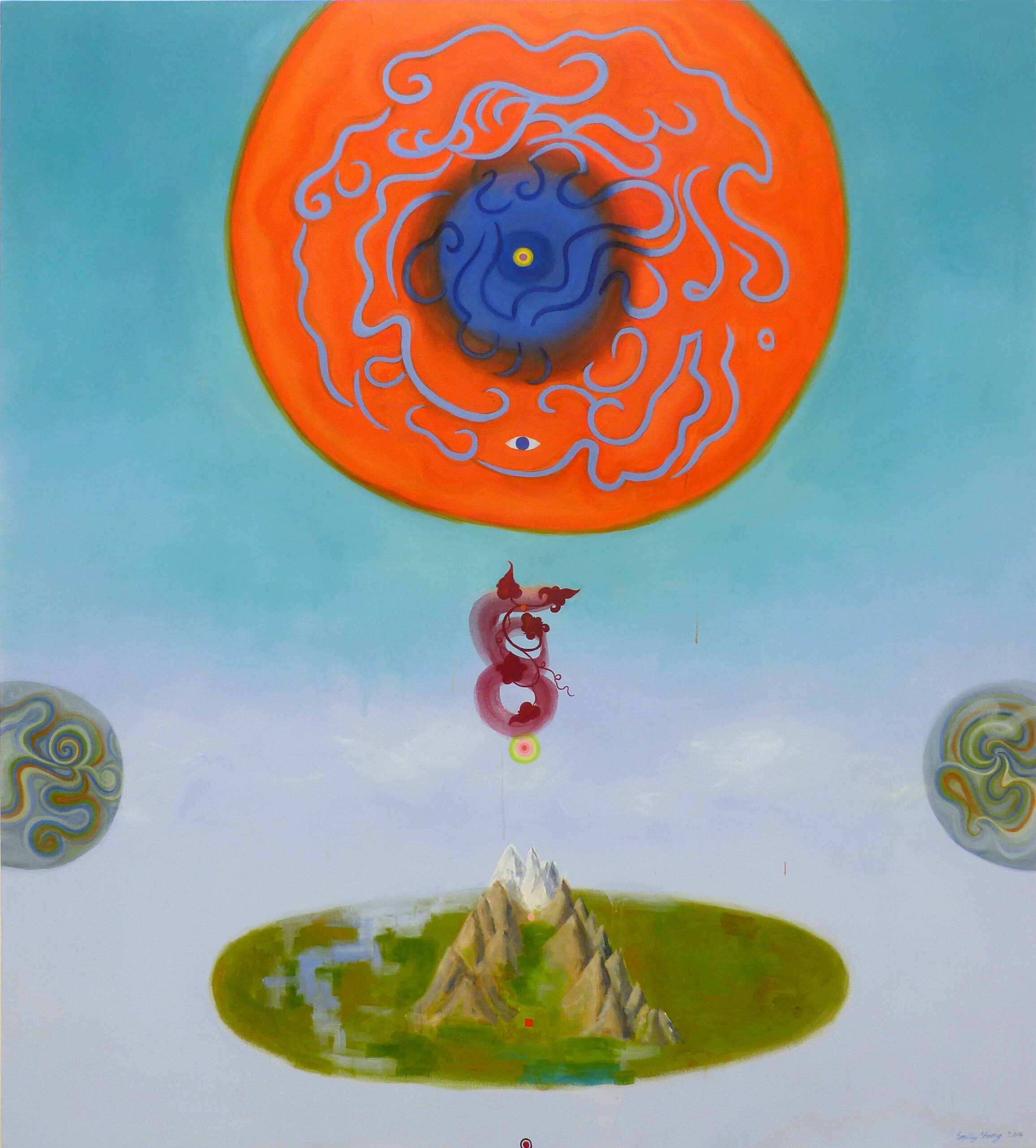 This selection of works by artists as varied as Emily Cheng, Ju Ming, Gaylord Chan (here is a happy name for you!), Luis Chan, Xu Longsen and others, present a diversity of States of Happiness. From new iconography of the spiritual like Emily Cheng, simple happiness of the living world like Ju Ming and Chu Hing-Wah, spicy humour like Gaylord Chan and Luis Chan, love of the natural world like Xu Longsen, Yeh Shih-Chiang and Chimeddorj, to escapes into magical realms like Luo Yin and Uurintuya. There are multiple ways to step beyond.