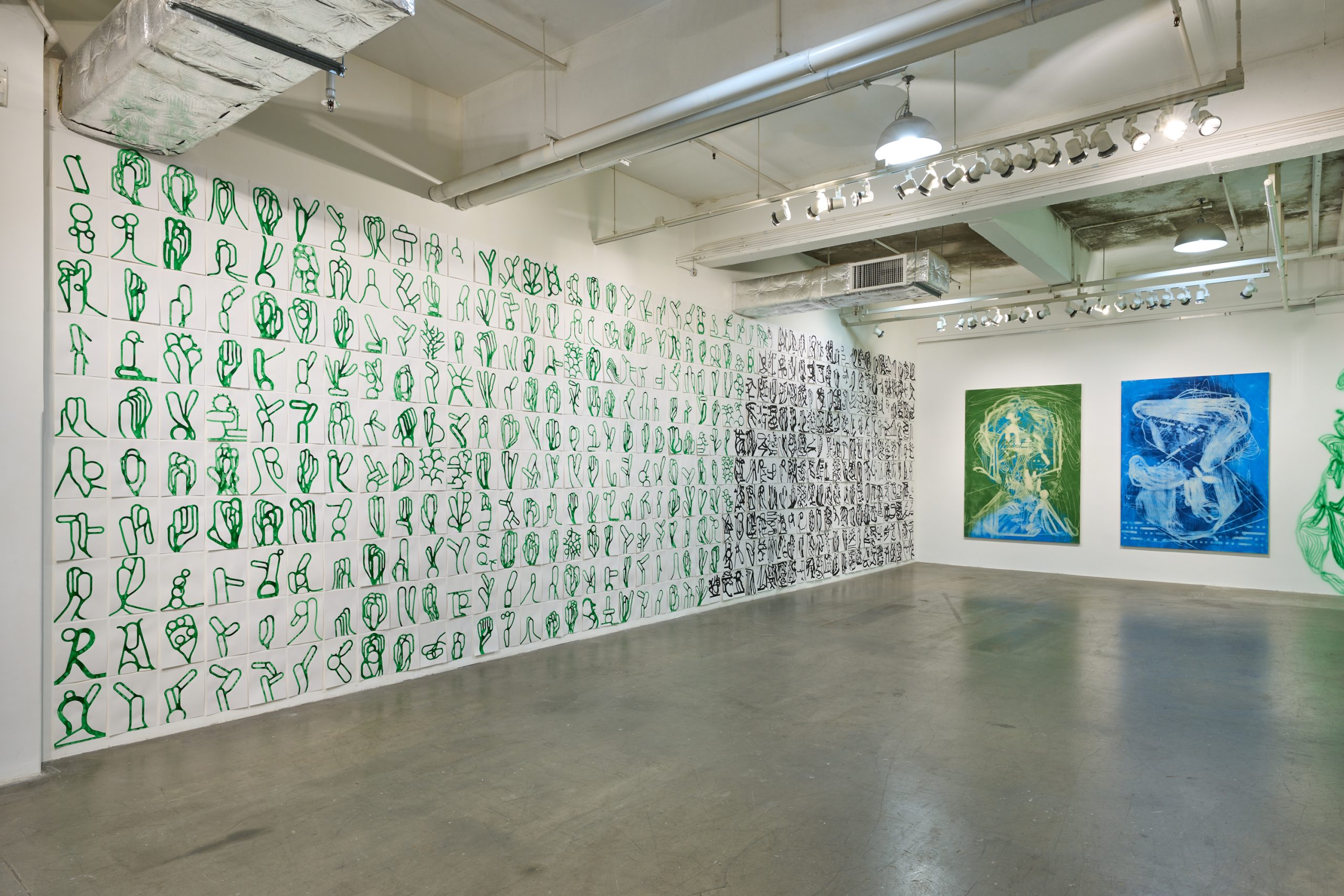 The paintings of Christian Schwarzwald and Kurt Chan take the flesh of the word, its visual aspect, as the subject of their playful imagination. They are both interested in how the written word evokes particular realities; and how, as a graphic form, it inadvertently spills over into channels of unintended meanings and visions. With the two artists coming together in one exhibition, their separate languages allow us to see with multiple pairs of eyes.