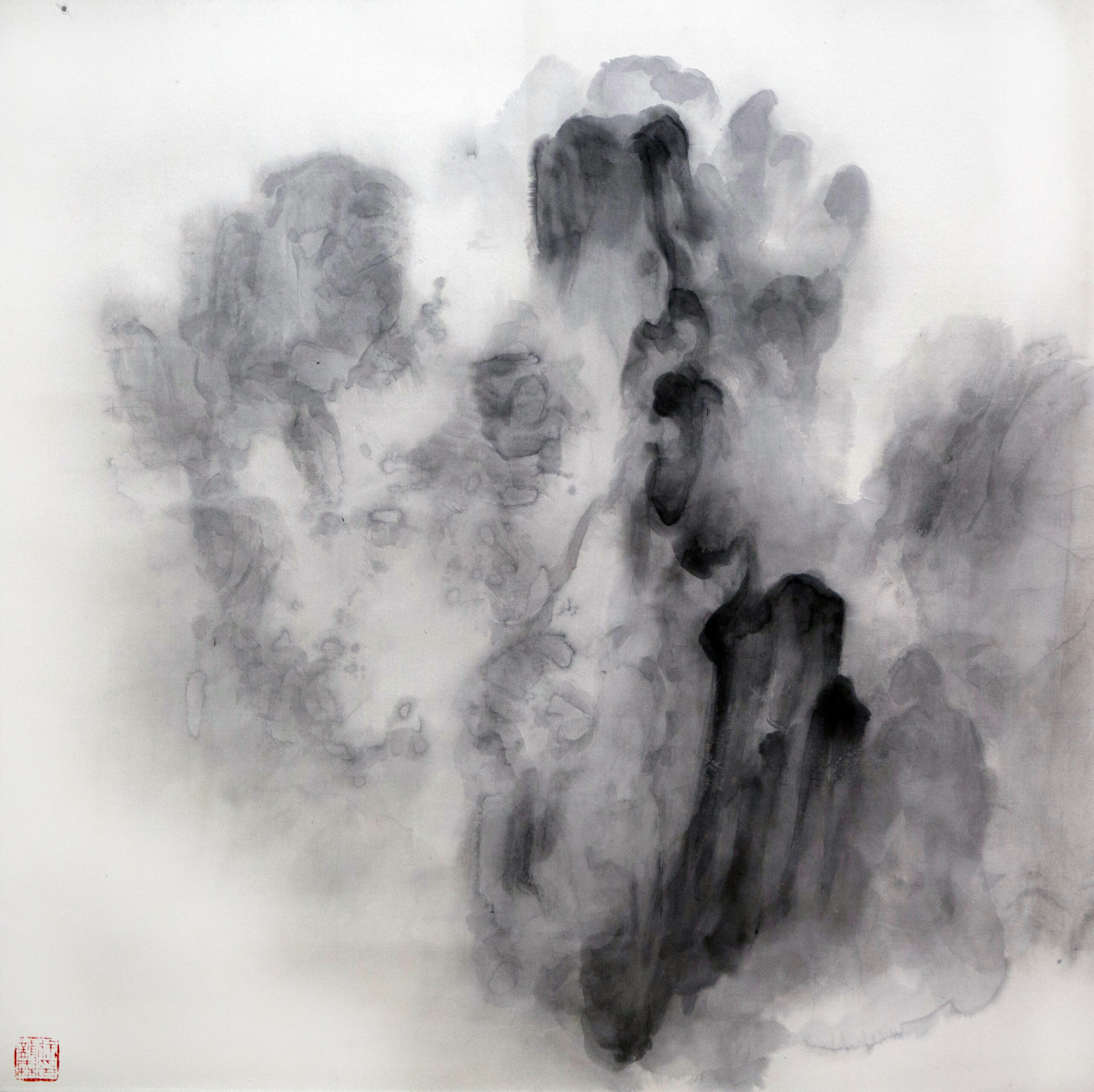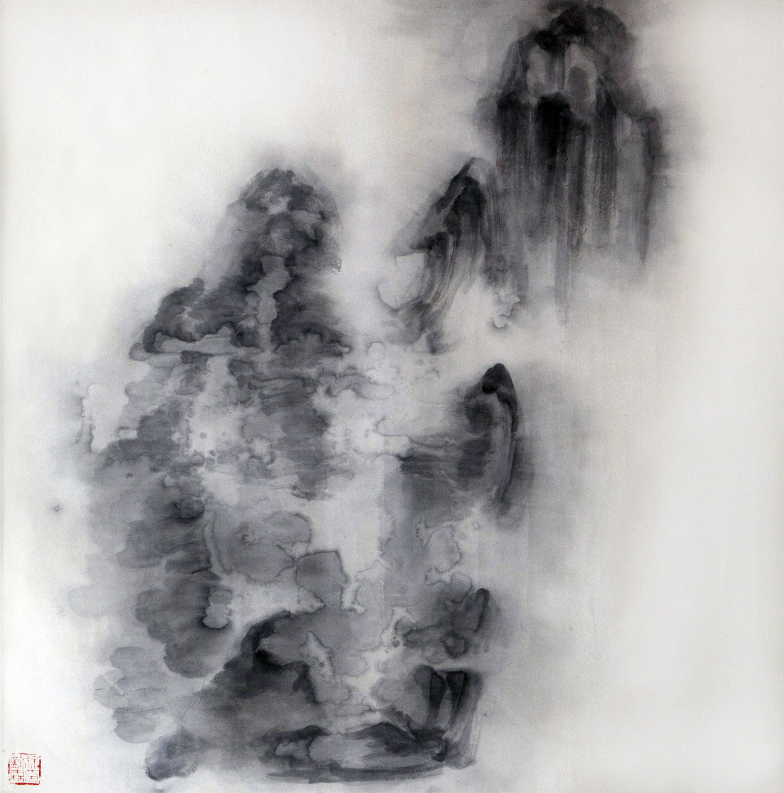 In traditional culture, people made gardens and rockeries to re-create nature: The legacy of this practice is the literati garden culture. Xu Longsen builds rockeries with ink-and-brush, and plants trees with xuan paper: He is constructing a literati garden with his paint brush, and also a contemporary literati space of display through the arrangement of his paintings within the exhibition hall. Once one steps inside the world of his pictorial display one ceases to yearn for the natural garden and is content to loiter within this space. What he has captured here is the spirit of immanence: Looking up at the towering cliffs of ink is to experience both the weight and gravity of their monumentality and the sensation of soaring into their dizzying heights. Gazing at the mysterious, towering trees is like encountering a spirit in the mist, and an inner smile emerges in the knowing that it is enough to be here, in this space and in this moment, among these mountains and these trees.