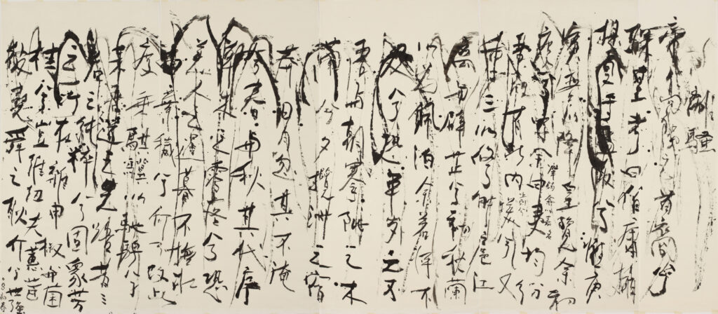 運用古今對照,展覽作品時代最早上溯至明代的王鐸,以及日本江戶時代的白隱慧鶴、良寬、仙厓義梵等僧人,一直到當代之間的書法家、文人、藝術家、思想家、作家、設計師和社會議題的提倡者等。作品形式從傳統的立軸、手卷、文人書信尺牘、詩稿,以及現代舞蹈、電影海報等跨界合作的實績,乃至於公共議題的倡導媒介,用書法的多重面貌,呈現書法在當代的多種可能。