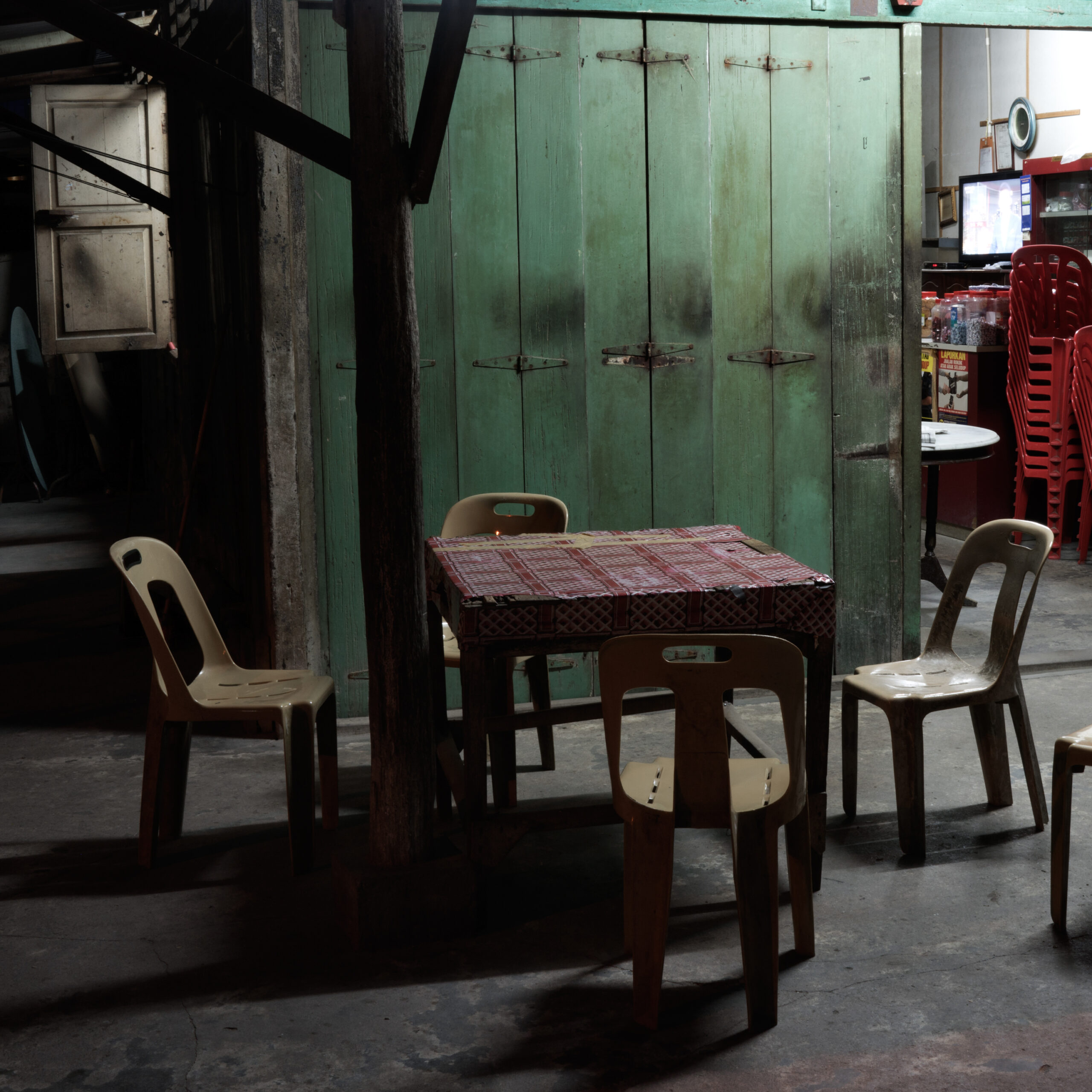 與這些未經矯飾的靜物照並置的是十六張景觀圖,藝術家有意凸顯景觀的朦朧美感,而場景多是武裝衝突曾發生的地點,或是游擊隊在叢林的伏擊據點和藏身的洞穴,有淌過無盡被共產黨殺害的平民的血河,也有1948年末二十四名手無寸鐵的平民遇害於英國軍隊之手的村莊,一座依垻而建的巨大人工湖,為將馬共全數引出雨林,還有當局政府將超過五十萬棚屋居民遷置到的「新村」,用帶倒鉤的鐵絲網包圍,為切斷民間支持者對游擊隊的補給……沈綺穎從歷史學和檔案學角度著手調研,進一步藉由藝術創作的途徑捕捉到「幽靈風景」,從現實場域中呼喚缺失、異位的歷史記憶。如此看來,她意在為叢林、橡膠樹、錫礦山、石灰岩洞等戰爭反覆出現的母題疊加一重映射,塑造出時間的肌理。這系列回應了2017年諾貝爾和平獎委任沈綺穎所作的核武主題展覽項目《沈默的大多數》,從紀實性轉向隱喻抽象的立場,啟發觀眾抽離出陳詞濫調,暫時放下對場域、現實、時空、立場的感知乃至道德評判。