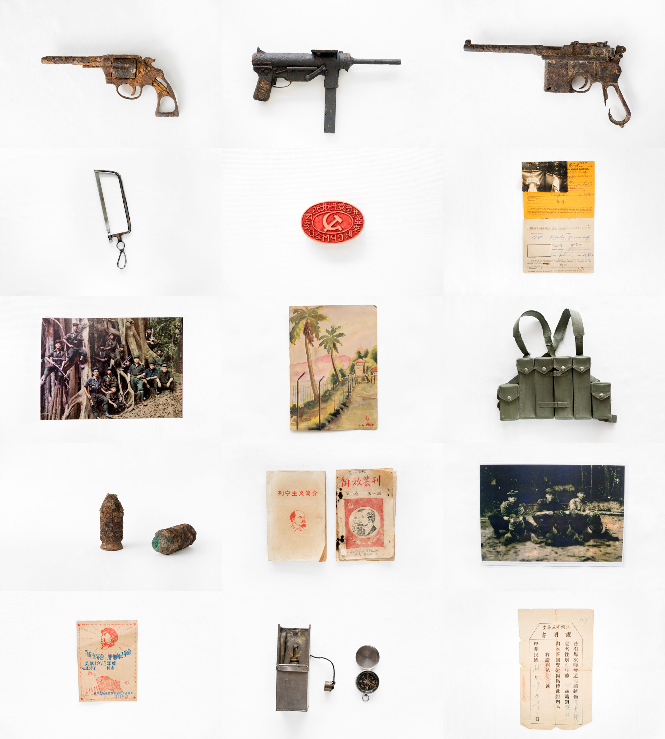 沈綺穎搜尋到散佚的文物、文件、曲譜等等,輯錄成非官方的戰爭文獻,涵蓋了左派群體的主體意識和記憶。在展覽的「餘跡」部分,藝術家展示了三十二件戰爭遺留物品的相片。為拍攝這些素材,她一一尋訪了現居中國大陸南部、香港、馬來西亞、新加坡和泰國南部,而今都已年邁的左派戰士。