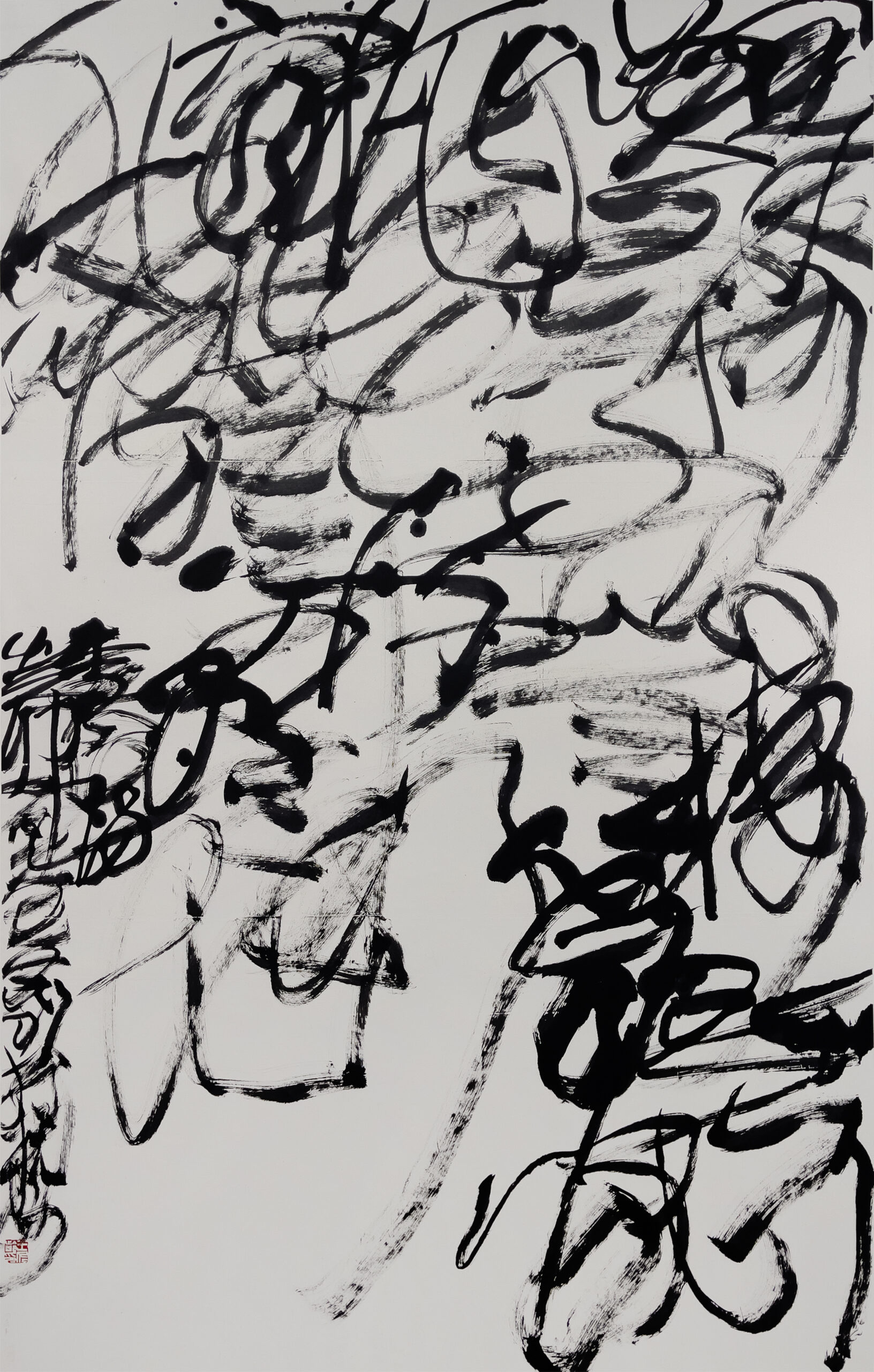 「亂書」是王冬齡多年來備受矚目的創新成果。「亂書」把字與字、行與行之間重疊交織成渾沌一體,文字的可識讀性被推至邊緣。「亂書」的肆意揮灑是建基於藝術家深厚的書法修養,每個字的「結字」都嚴格遵從草書規律,「亂」中實則有「治」。本展覽將呈現多件「亂書」巨幅,當中的《蘇軾茶詩兩首》長達五米。