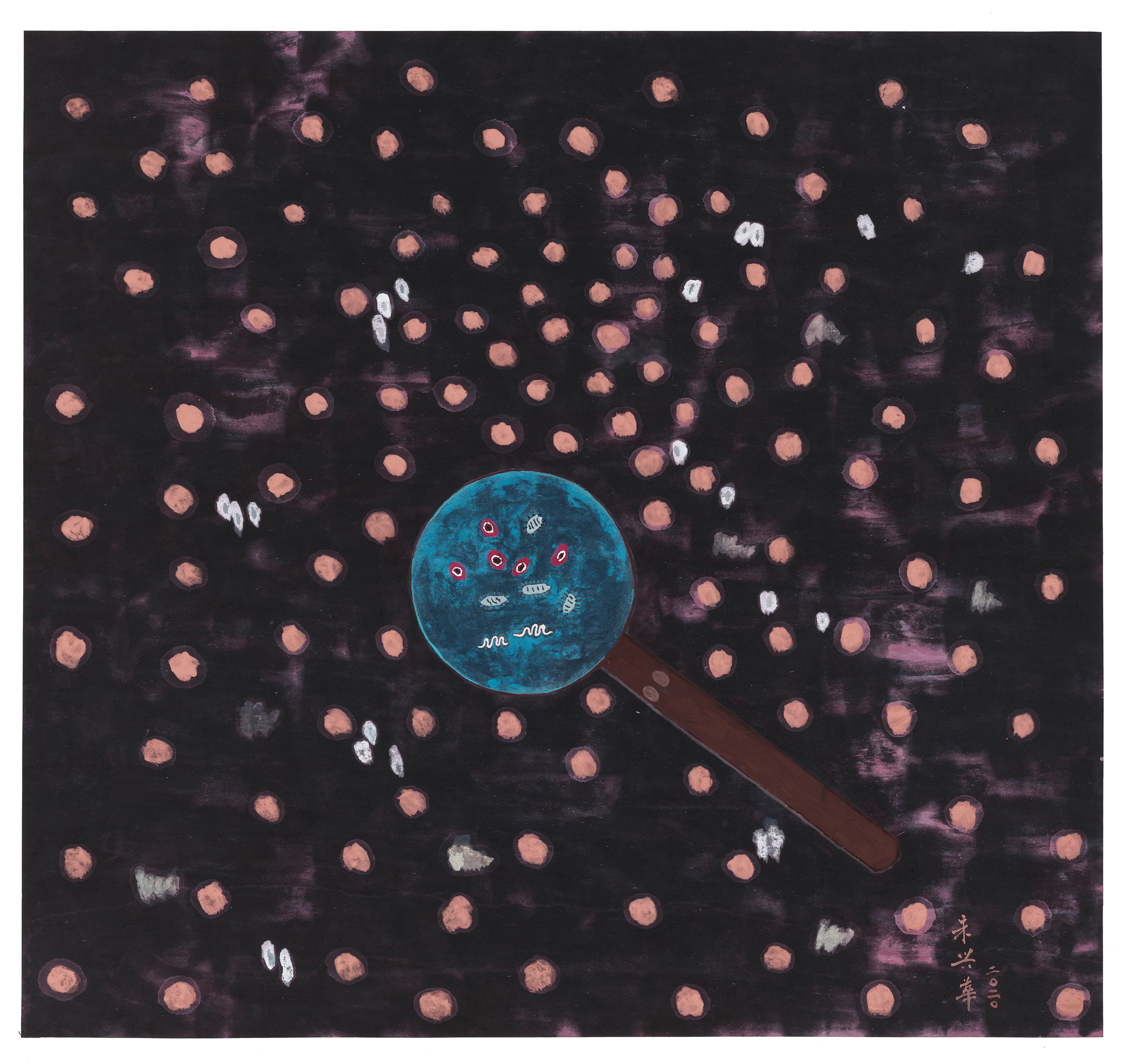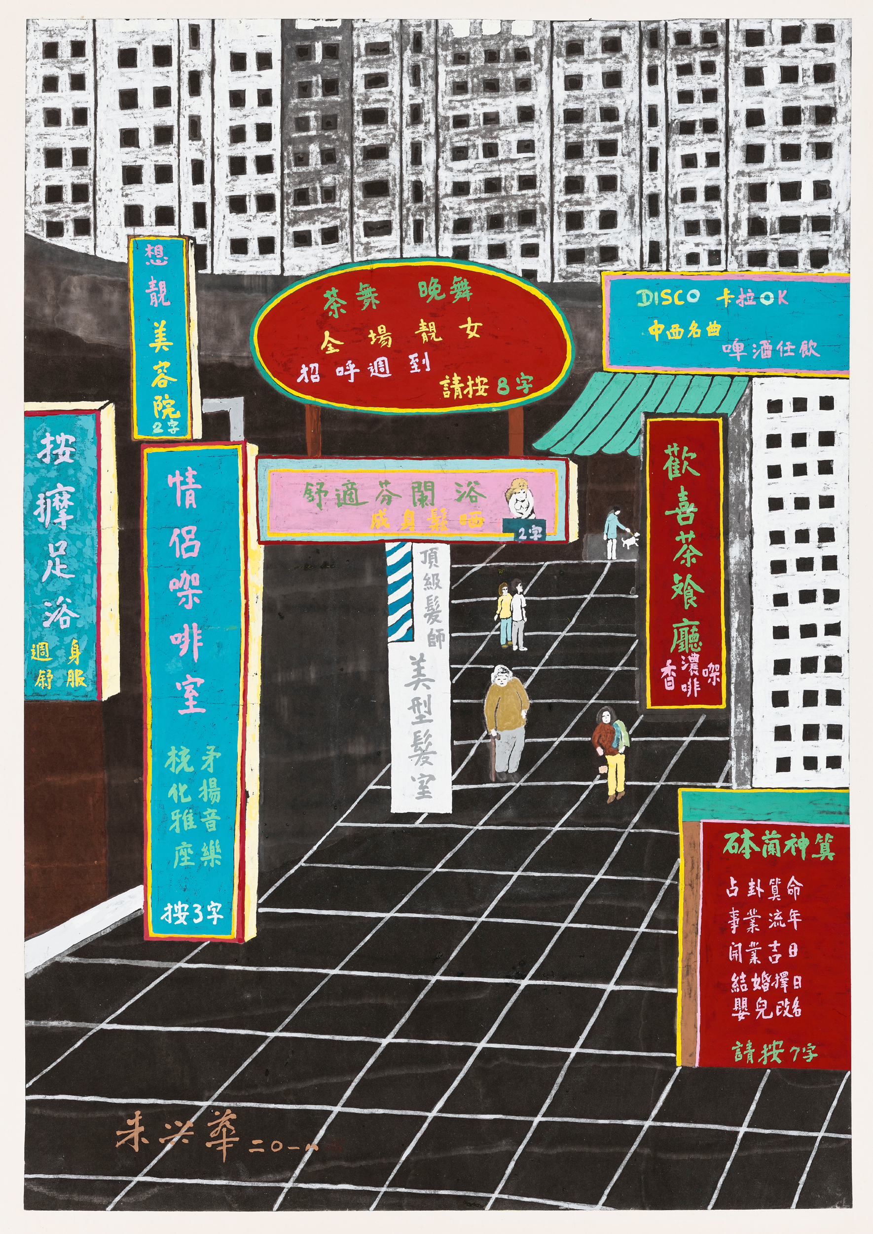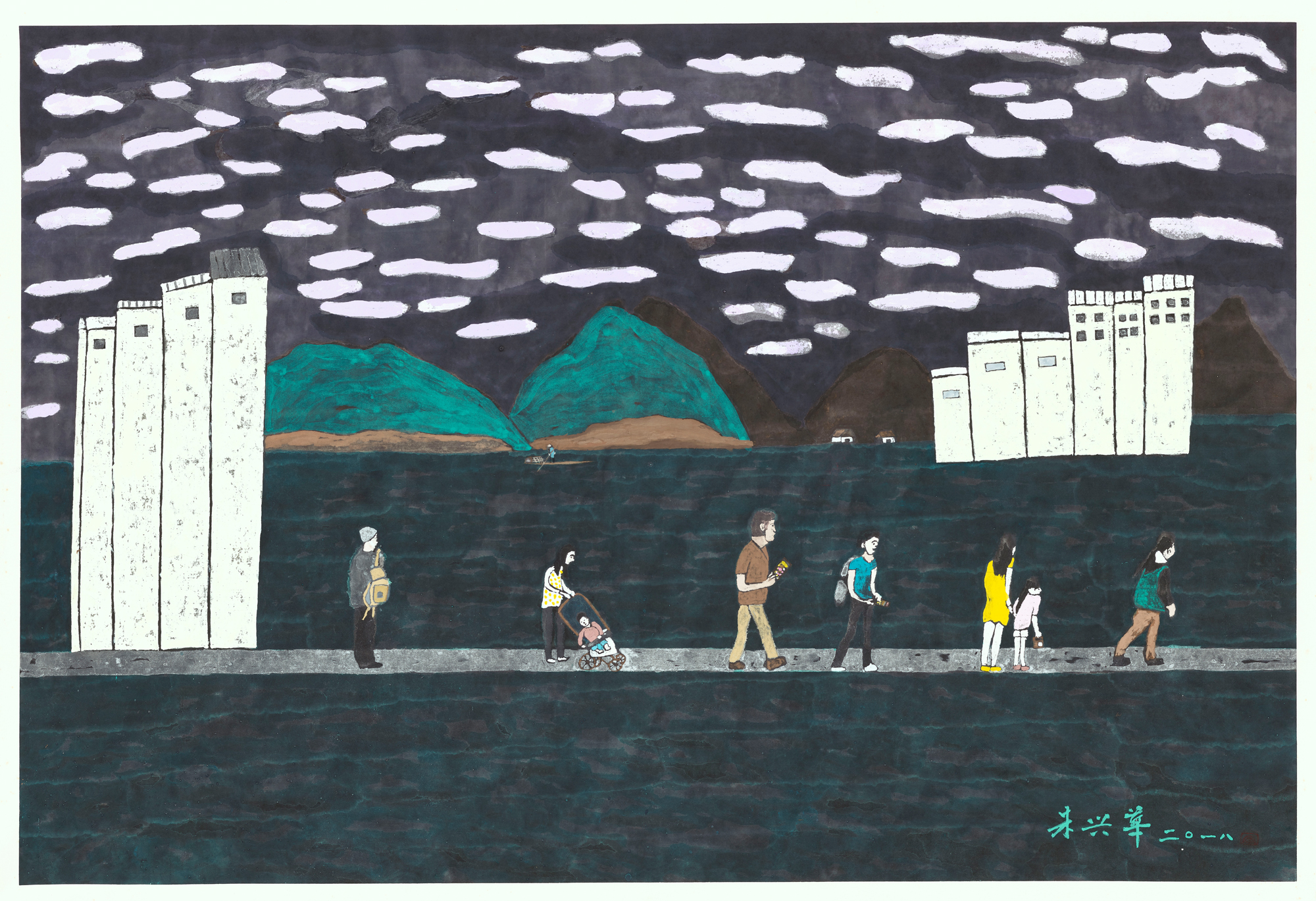 青年時期進入專科學院後,朱興華的繪畫生命與他專業心 理科護士的生涯長年並行。他 著眼心理的脆弱點以關心平民,以是他的人情味沒有市井氣,雖然取材不離香港人熟 悉 的片段。他的技巧帶著素人畫的稚氣,但懷著世故的淳厚。小市民生活之樂在於人情與 天倫,這是抵禦商品化時代的底氣,也是親近世間事物的出發點。