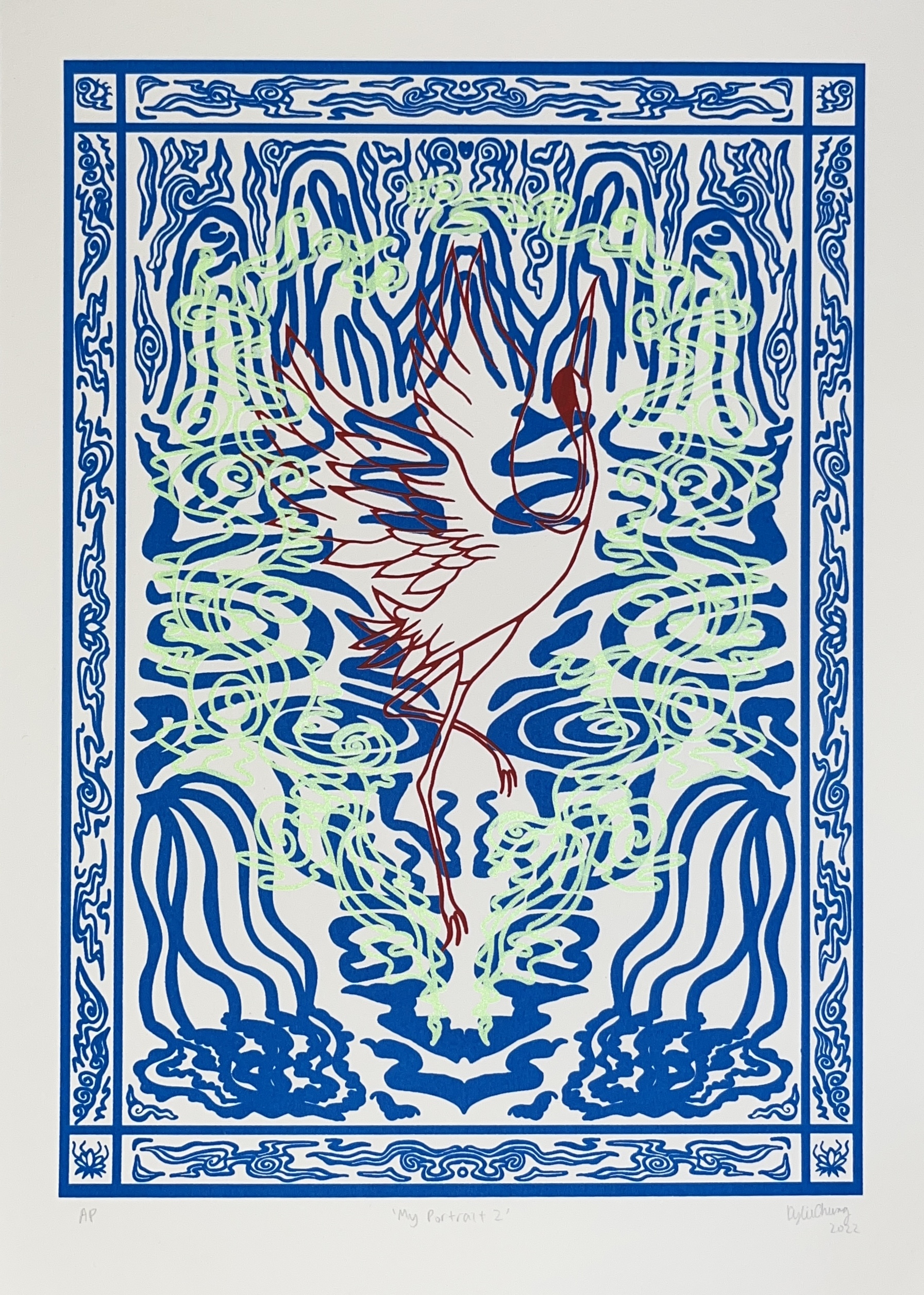 Chivas LEUNG and Nicolas HO both studied in Japan, the birthplace of the celebrated printmaking style of ukiyo-e. In Leung’s award-winning series of water-based woodblock prints, each work is named after a line of lyrics in a specific J-pop song from Leung’s personal playlist. The colors and textures in the works capture daily life under a humorous lens. Nicolas HO’s screenprints are clean and serene.